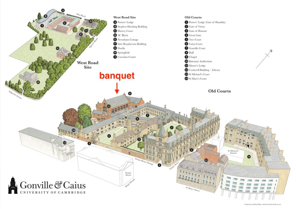 The conference banquet is on Thursday the 9th of September and it will taken place in the Old Courts Hall of the Gonville & Caius College. Caius is the fourth oldest College in the University of Cambridge. The College was first founded as Gonville Hall by Edmund Gonville, Rector of Terrington St Clement in Norfolk, in 1348, and refounded in 1557 by John Caius as Gonville and Caius College. The heart of Caius is right in the very centre of the city. The College is one of the largest Colleges in Cambridge. It has produced fifteen Nobel Prize winners (more than any Oxbridge College bar Trinity College, Cambridge).